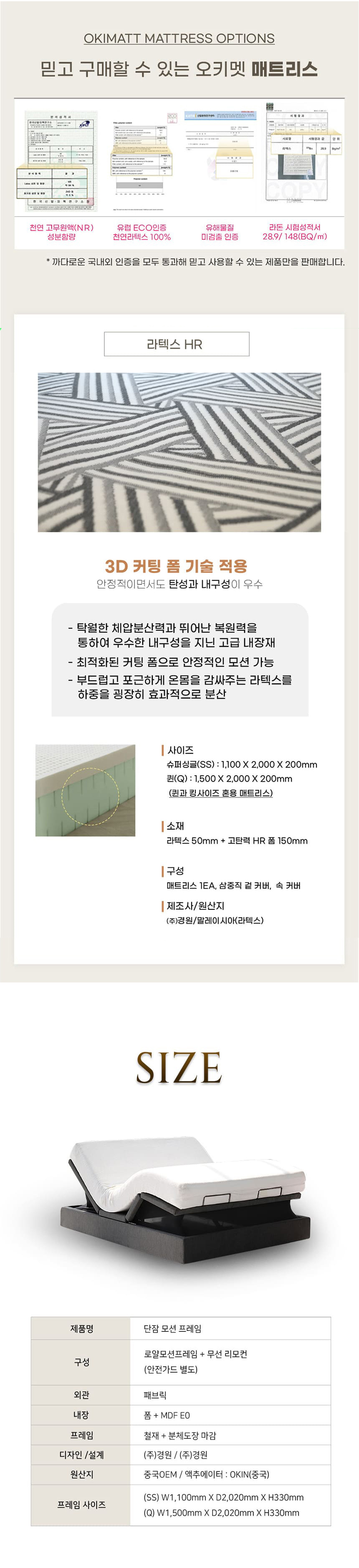 [오키멧] 단잠 프리미엄 유로라텍스 모션베드 SS